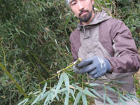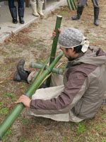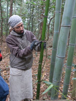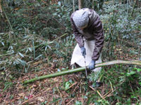 無駄なく使えるように、病気の竹でも元気なところは利用する |