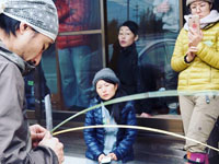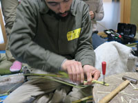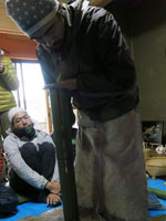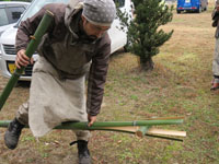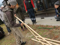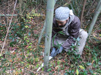 ・枝の払い方(小ぶりの竹棒で上から払う)