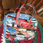 カーズとソレイヤードの残布キルト生地で(ファスナーは、インドの枕カバー解体のもの)