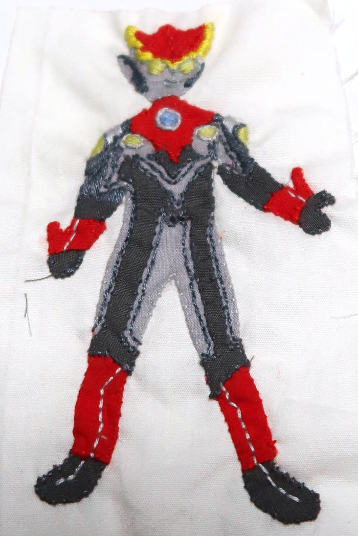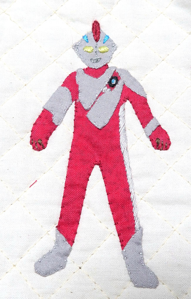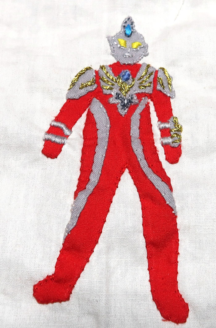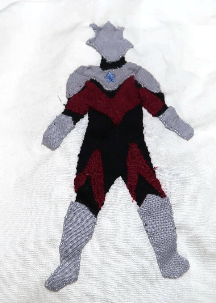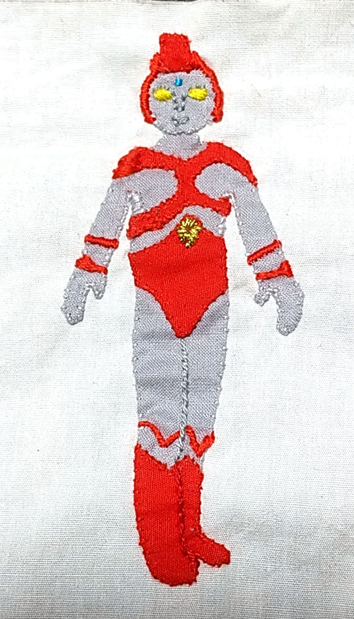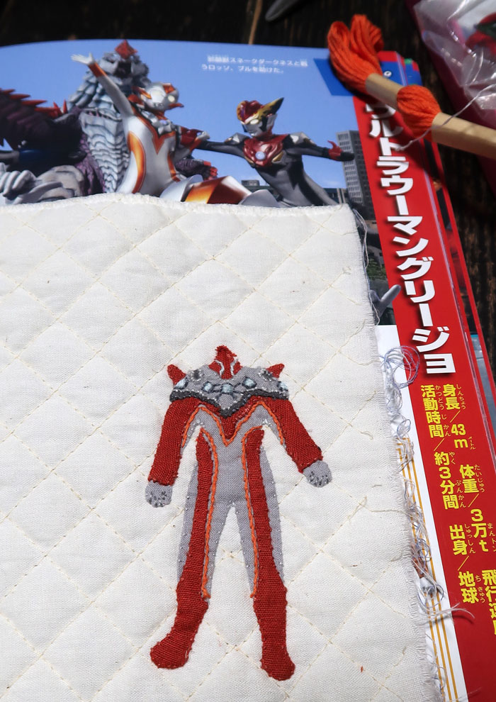 ウルトラマンUSAスコット、赤いところは刺繍にした