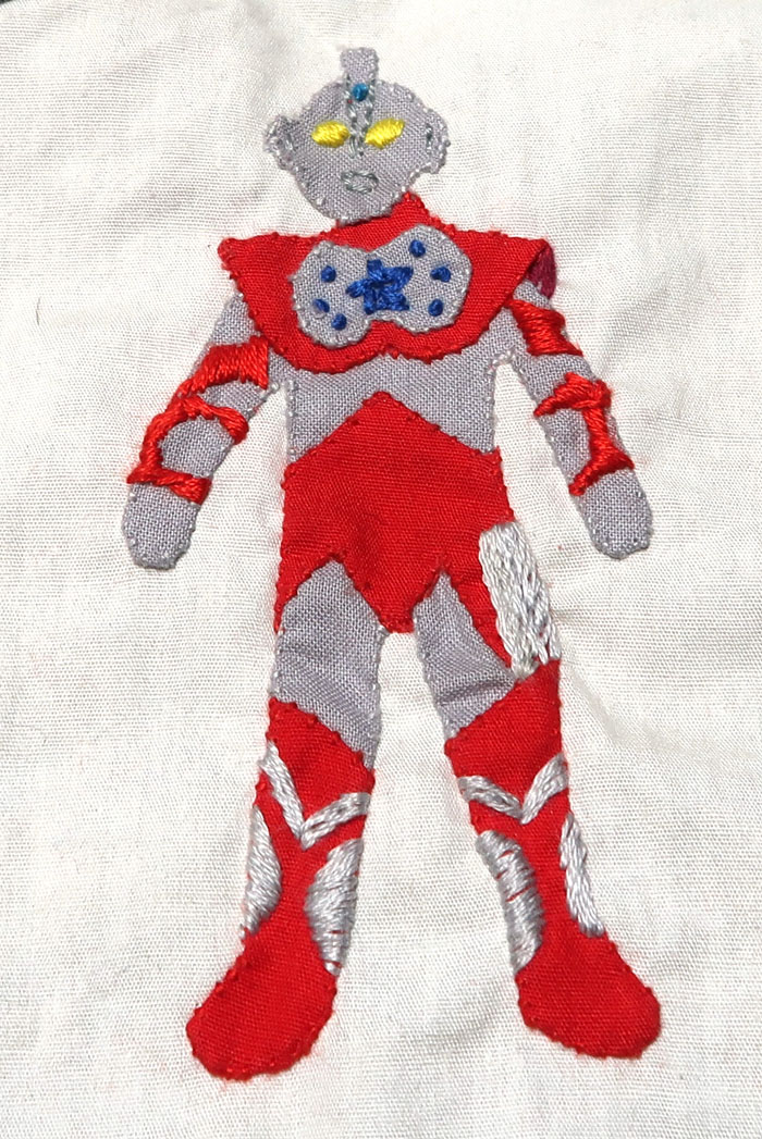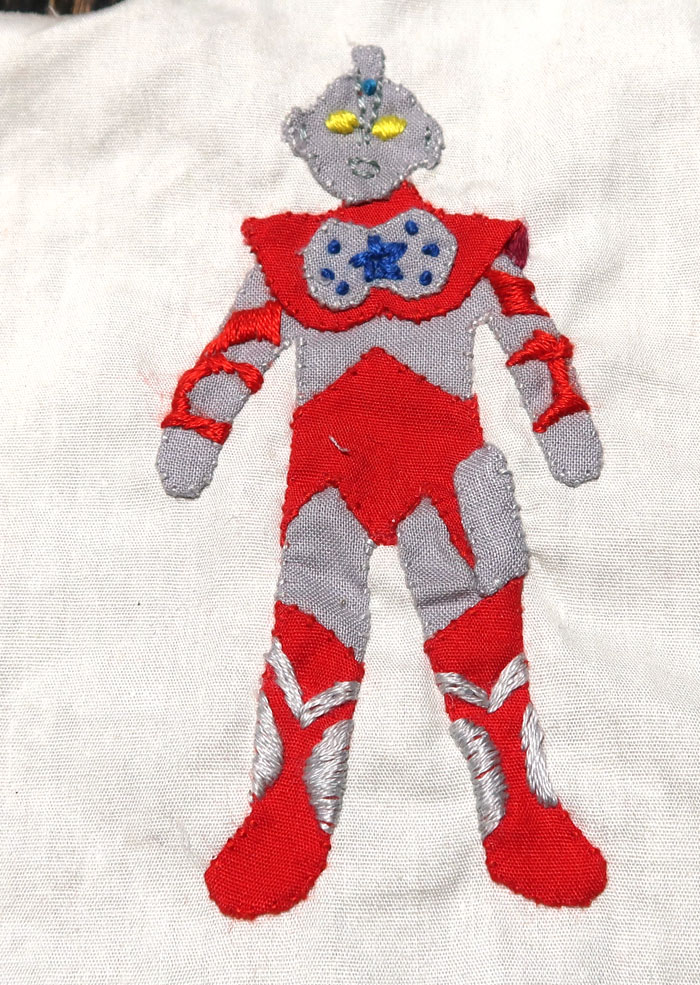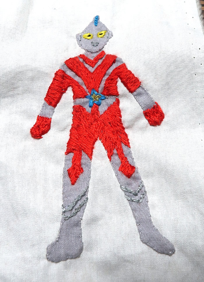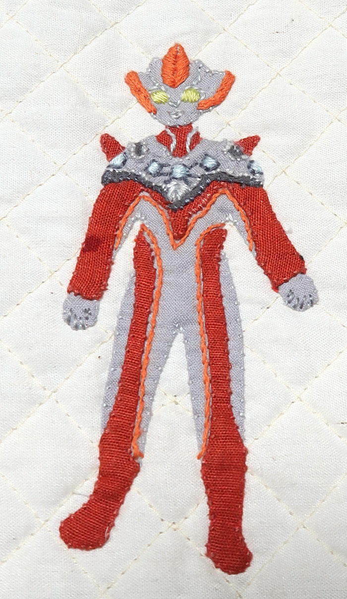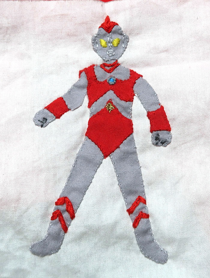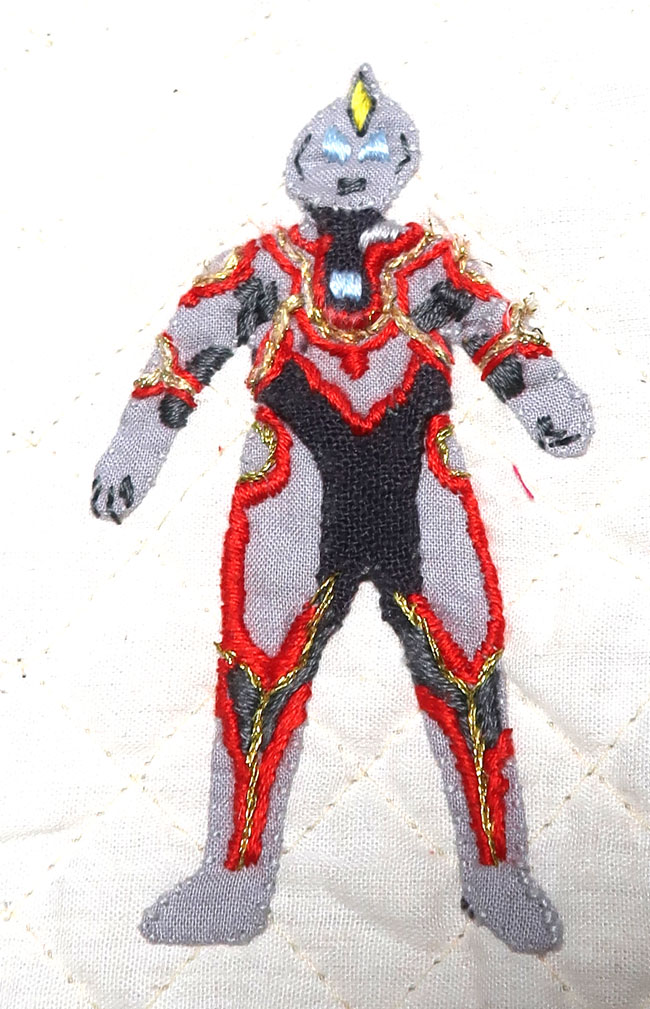 ウルトラマンUSAスコット、赤いところは刺繍にした