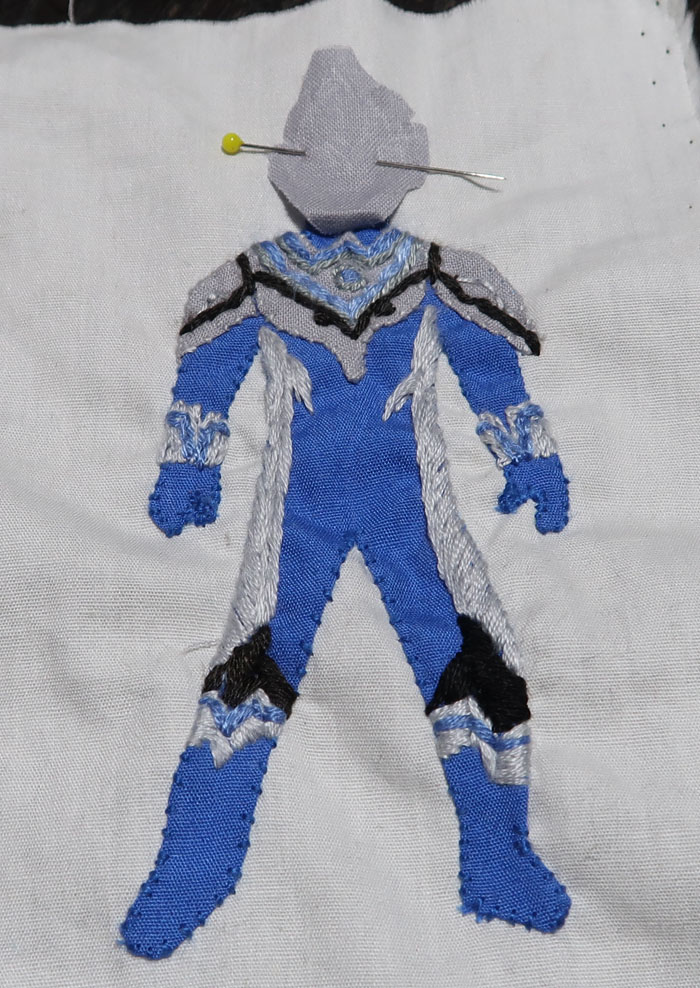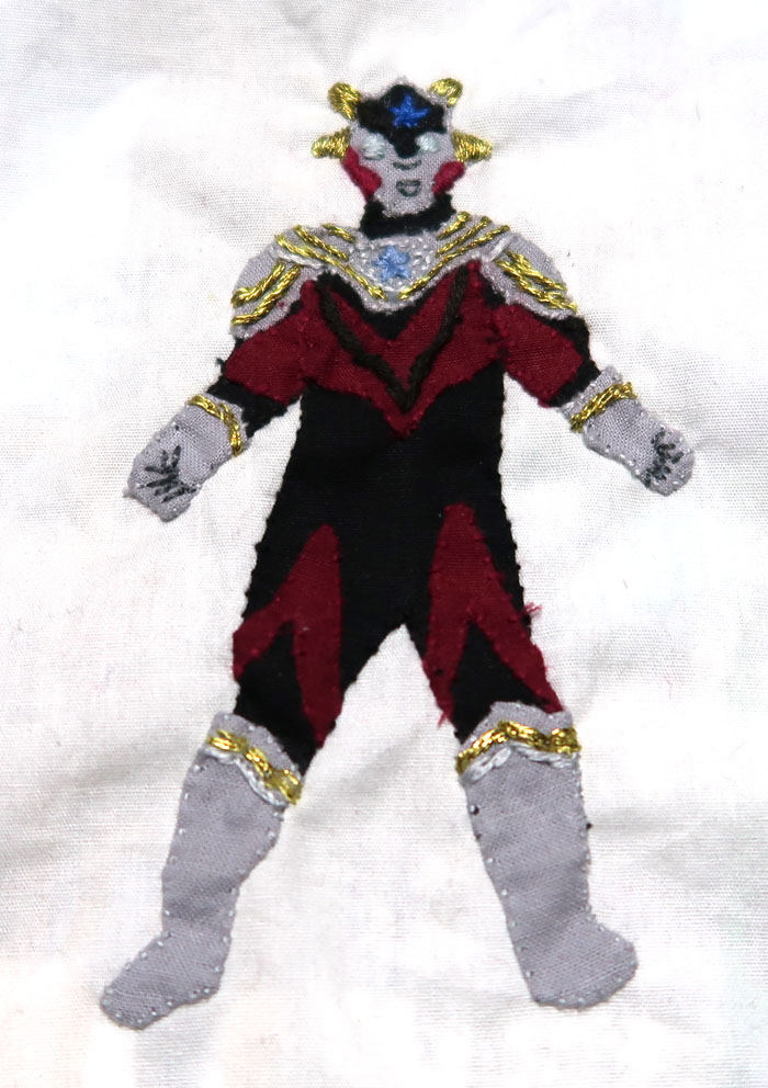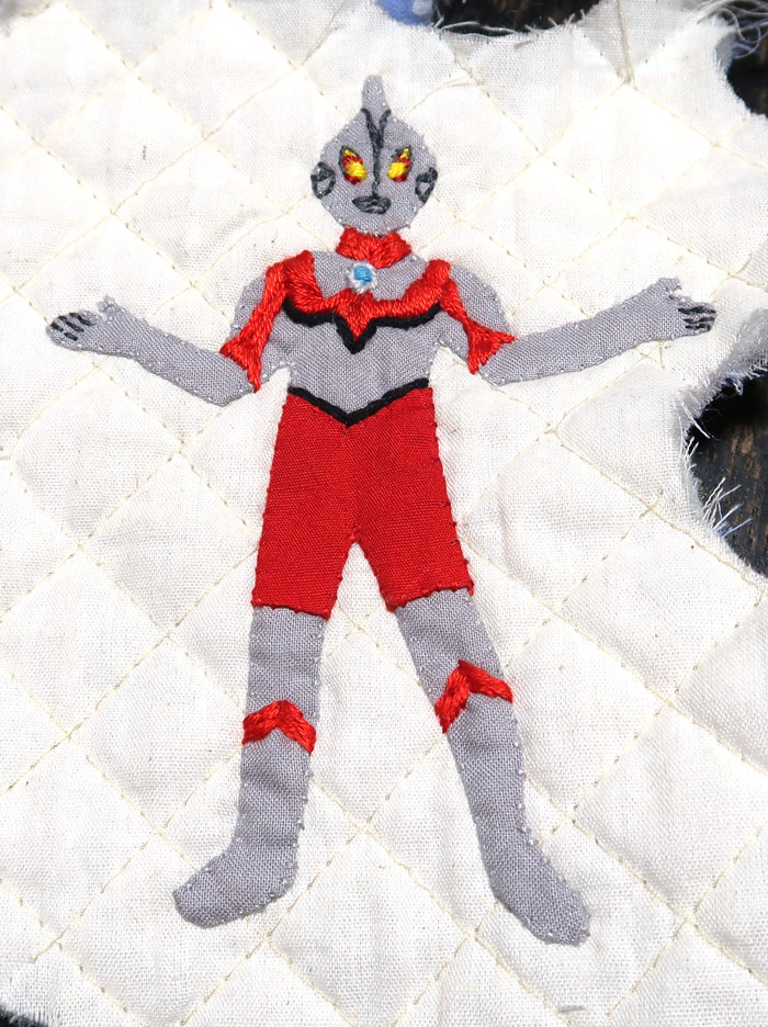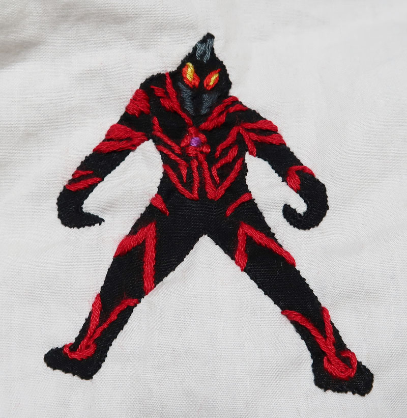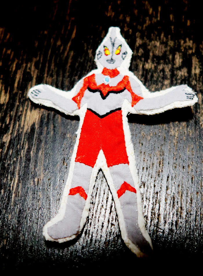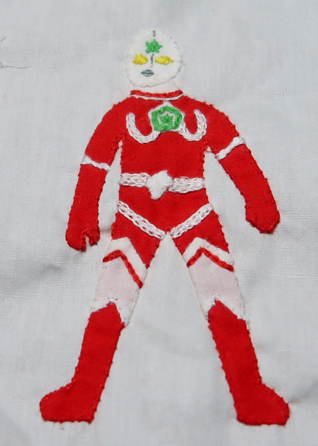 ウルトラマンUSAスコット、赤いところは刺繍にした