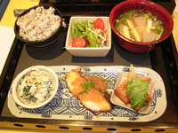 雑穀と豚肉のご飯、最後のロールケーキ、途中、魚料理や肉料理。昨夜と違い、雑穀を使ったメニューではない。なかなか手に入らない「魔王」という焼酎がありましたが、ありがたみわからず、2杯だけいただく。