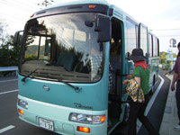 圃場見学のため途中から玉野市の小さなバスに乗り換える.