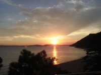 永山久夫理事が夕食会から参加。きれいな夕日を見られて感激したそうだ。明日の講演会でその話が出ました。朝日、夕日を見ると脳にセロトニンという幸せホルモンが出るそう。