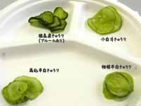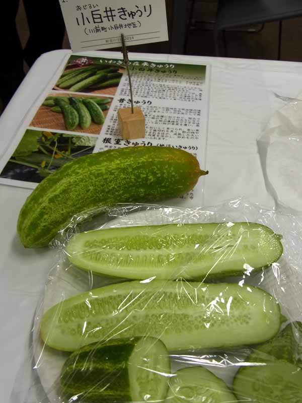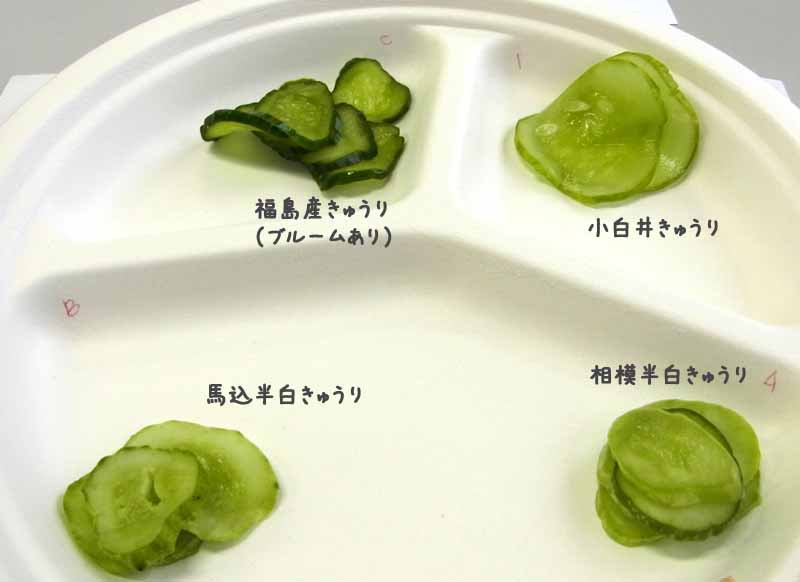 小白井きゅうり…シャリシャリみずみずしい、かすかに塩味、種多くその周りのゼリー部分がおいしい