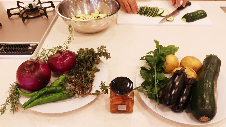 4.ズッキーニのアンチョビマリネ(アンチョビ・黒オリーブ・ディル)