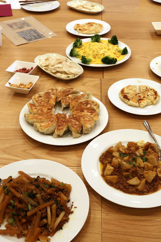 @鍋貼(皮から手作り馬蹄型焼き餃子)=生地からつくる野菜餃子 A葱油餅