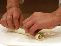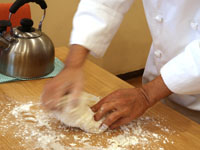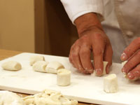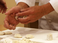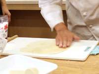 | 【餃子作り】 皮作りを体験したい人は、早めに来場とのことで、私も早めに参加 |