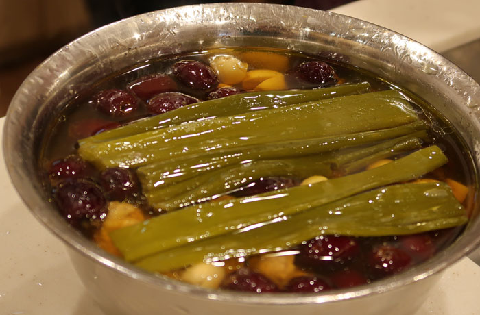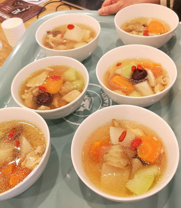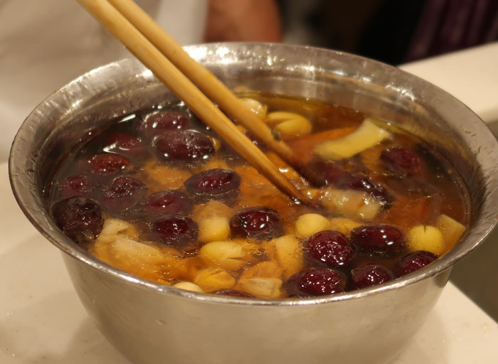 G八宝薬膳湯(大棗、蓮子、枸杞)=根菜で体温まる鶏の薬膳スープ