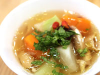 | 【八宝薬膳湯(大棗、蓮子、枸杞)=根菜で体温まる鶏の薬膳スープ】 |