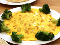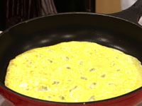 薄焼き卵を焼いて野菜炒めの上にのせる |