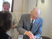 きたろうさんのバッジは、昨年イギリスのセリアさんを訪ねた際に、いただいたものとのこと。