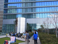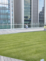 屋上を回る。「芝生に入らないでください」のプレート。 |