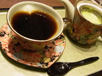 さっぱりと基酒(日本酒)/ソーダ/トニック/オレンジピール580円。コーヒー抹茶もステキ。和的なカップソーサーながらもハート型。おしゃべり盛り上がりました。 |