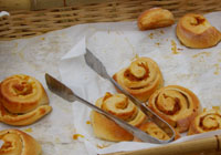 そしておやつ。自然酵母しらかみ酵母菌のマーマレードロール。黒砂糖とはちみつ味があったと後で知る。