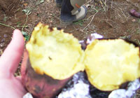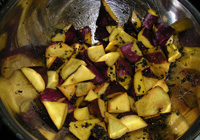 ←さつまいもといえばやはり、大学芋さんです。しっかり揚げて水あめ等にからめます。黒胡麻も。