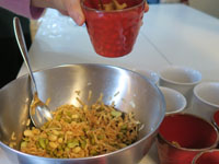 茹でる時に0.3-0.5の塩、また砂糖は浸透圧を利用、水分を出させるもの