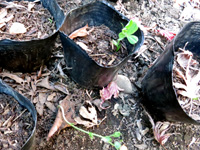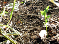 EM堆肥の中からカボチャもしくは冬瓜の苗。この堆肥はEM初期のだから、15年11月頃の分。