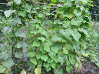 リーキのねぎ坊主とゴーヤの葉っぱ