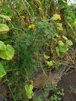 サラダ用野菜、ぐんぐん伸びて、じきれいな花を咲かす