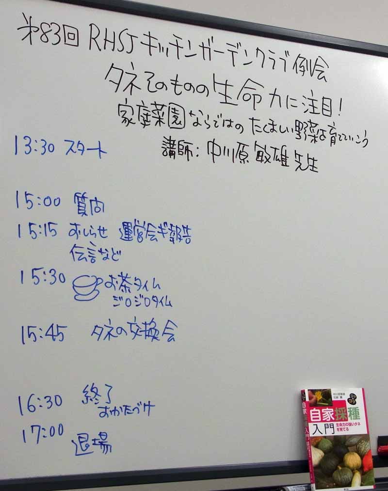 第83回 RHSJキッチンガーデンクラブ例会 タネそのものの生命力に注目! 家庭菜園ならではのたくましい野菜を育てていこう 中川原敏雄氏 参加費3,000円