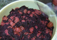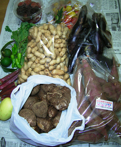 やっと3種の収穫が終了!もうとうに12時も過ぎており、腹ペコ。喉もからから。最後の力?を振り絞りMさん宅へ戻ります。ぺちゃくちゃしゃべっていたら、家庭菜園をしている老夫婦からうるさいと苦情あり。 |