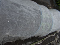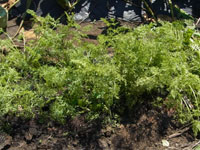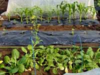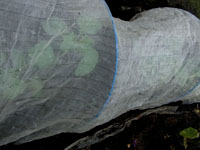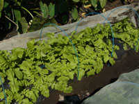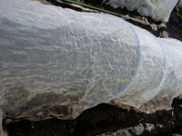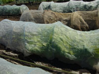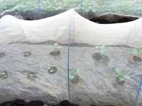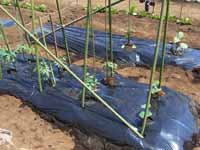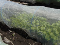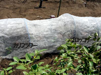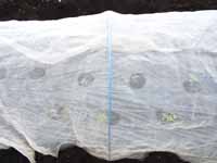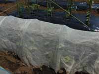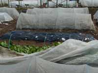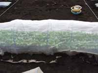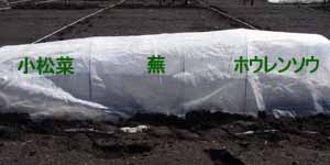 ホウレンソウ、カブ、コマツナは3条に種蒔きし、ネットをかぶせる。ホウレンソウの場所にのみ石灰を撒く。2時間ほどで終了。
