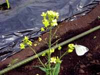 小松菜から伸びた菜花。モンシロチョウがひらひらと。
