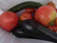 ジャガイモ2株のみ掘りました。ブロッコリー摘み取り後の株に小さな実がなっており収穫。そのほか、ナス、モロッコインゲン、キュウリ、ミニトマト3個。