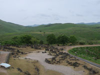 C長年の雨水と地下水で浸食され、凹凸地形のカルスト台地を形成する