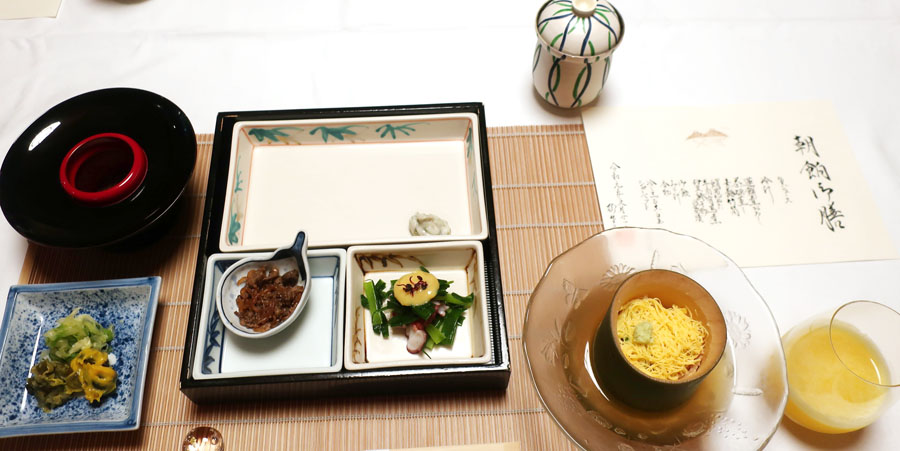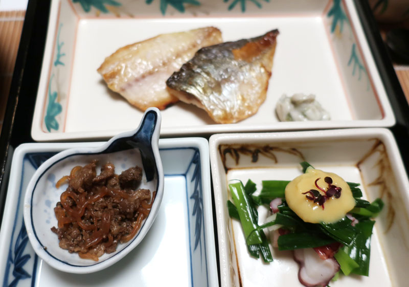 伊豆鰺干物、蛸葱ぬた、牛肉有馬煮