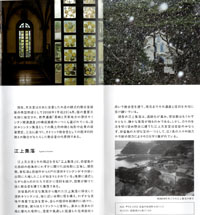 江上天主堂は、教会建築の名工・鉄川与助の設計施工で、湧水による漆器を意識して床を高く上げ、軒裏には装飾を兼ねた通風口を設けるなど在来技術を用いる。また柱には手描きの木目模様、花を描いた窓ガラスの特徴があり、内部は三廊式の平面を持ち、リヴ・ヴォールト天井(こうもり天井)構造で美しい曲線が祈りの空間を包む。 |