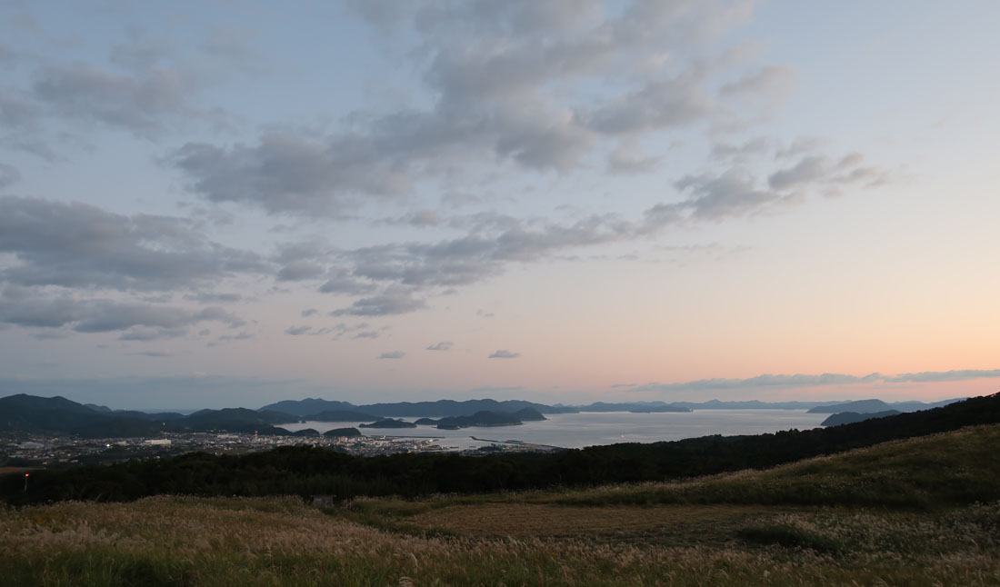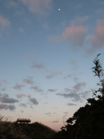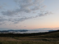 徐々に朝焼けが広がり、あの山の向こうに行くためには相当歩かなければならず断念 |