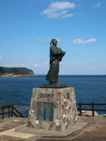 坂本龍馬が購入した帆船ワイル・ウェフ号が暴風雨で遭難。12名の同士を失う。鎮魂の想いを込め、遭難場所を眺めて合掌する象が建てられた |