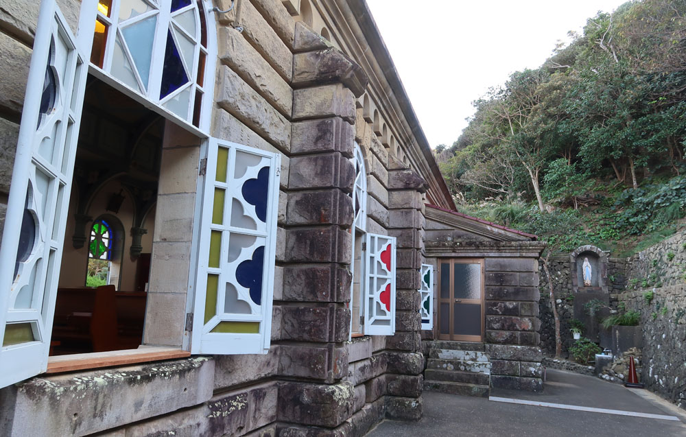 で互助関係を築き、密かに自らの信仰を継続。しかし、幕末から明治にかけてキリシタン弾圧の厳しさは増し、1868年には「五島崩れ(牢屋の窄弾圧事件)」と呼ばれる厳しい弾圧が行われ、多くの死者が出る。久賀島は、1873年のキリスト教解禁の直前に潜伏キリシタンへ弾圧が加えられた最後の現場となる。それでも彼らは迫害を乗り越えてカトリックへと復帰し、各集落に新しい教会堂を建てていく。