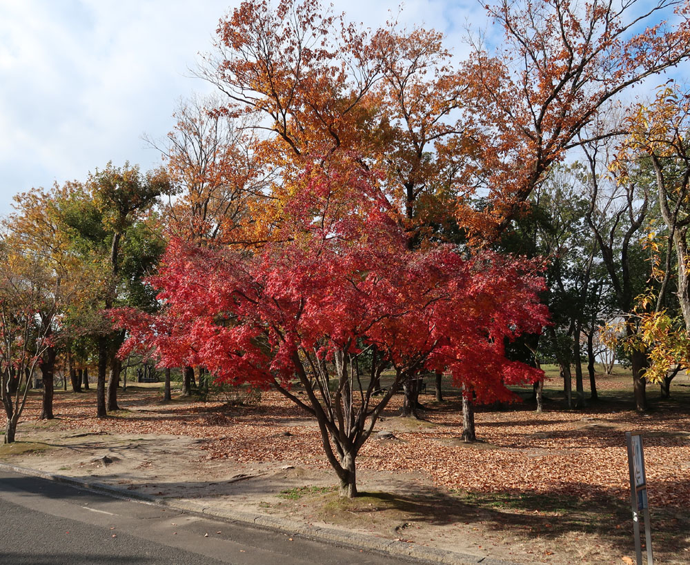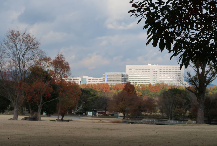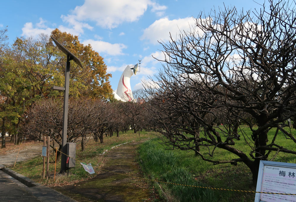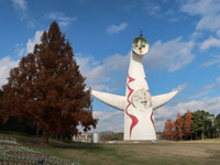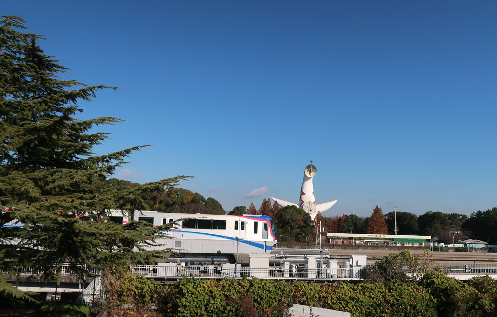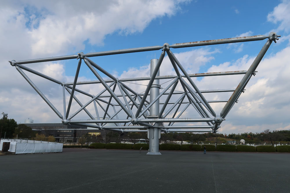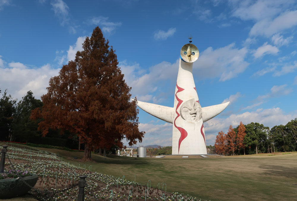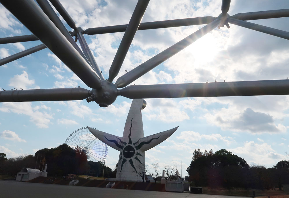 太陽の塔と記念撮影、公園の中をずっと歩いて民博に到着