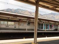 そばの阪急王子公園駅、ホームにはパンダキャラクターの絵が多い