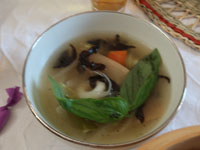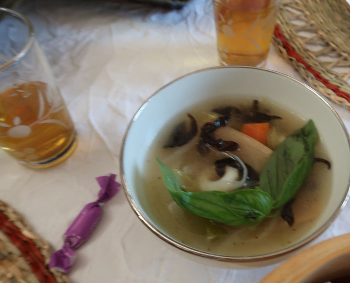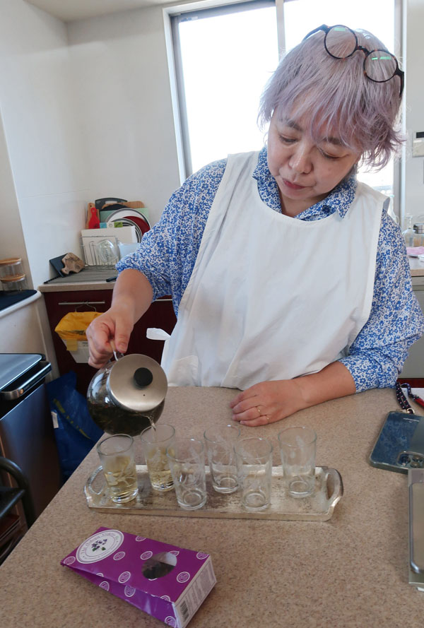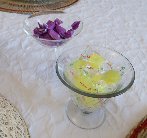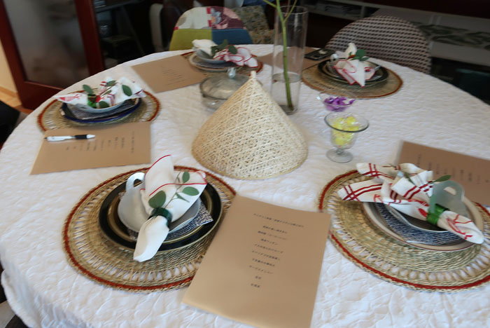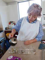 11月に入ったものの、なんとなく暑い日々の中キャサリン食堂へ、今回は妄想アジアンな朝ごはんレッスンへ。ウェルカムドリンクはウーロンヴィオレットティ。息子様のフランスみやげ。 |