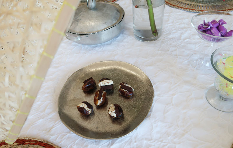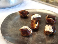| 円錐網の中、お菓子はデーツの中にクリームチーズとチョコ |