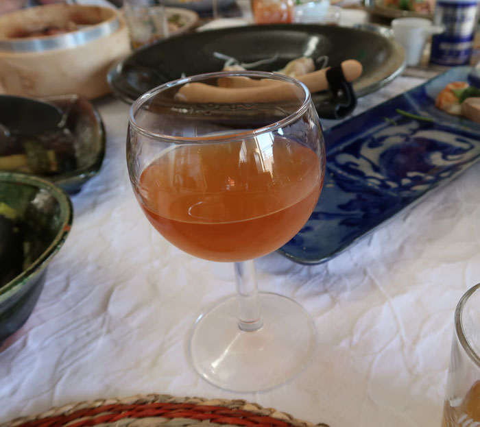 ワイン&レモンスカッシュ、無農薬レモンなので皮すりおろしも入っている。