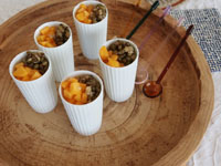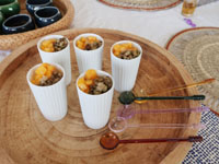 そして豆花トッピングに緑豆甘煮と柿 |