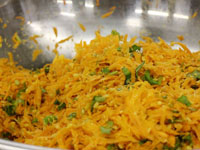 ニンジン・南瓜・グリンピースのベジタブルクルマは、カルダモン・クローブ・八角とスパイスが効いている(クルマはレッドチリ、赤唐辛子を使わず青唐辛子を使うのが特徴) |