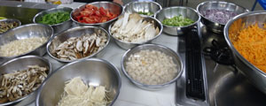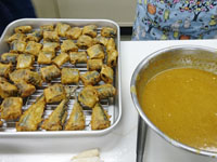 ほぼ下準備は終わっていました。6時食事開始なので、まだまだです。結局、食事開始は5時半過ぎ。ずっと立ちっぱなしは疲れる〜。 |