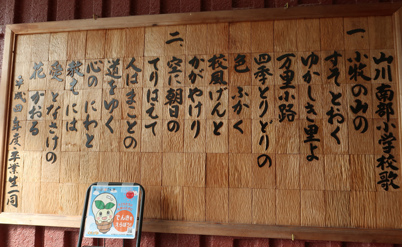 校舎昇降口には校歌 |