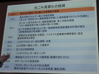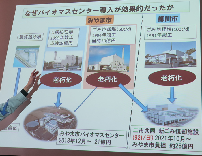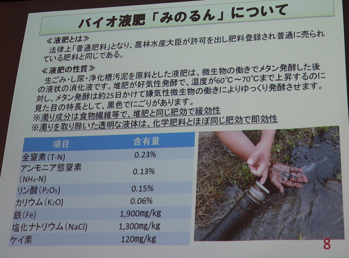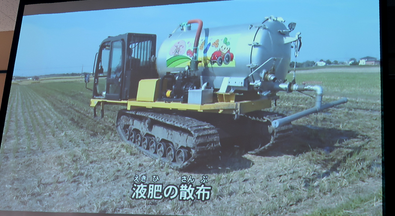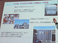 パワポで説明を聞く。資料代として500円/人。みやま市は人工35,788人。農業が基幹産業で、米・麦の二毛作を中心に、みかん・いちご・なす・トマト・スモモ等、野菜・果樹の栽培も盛ん。「山川みかん」、「あまおう」、「博多なす」はブランドとして高い評価。 |