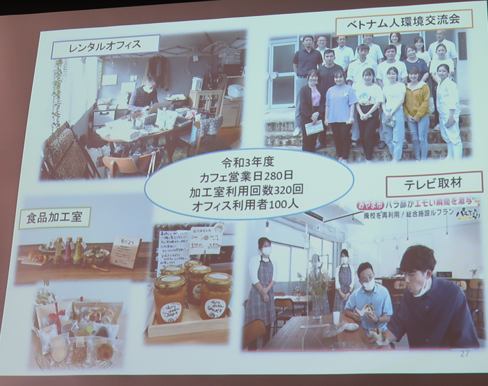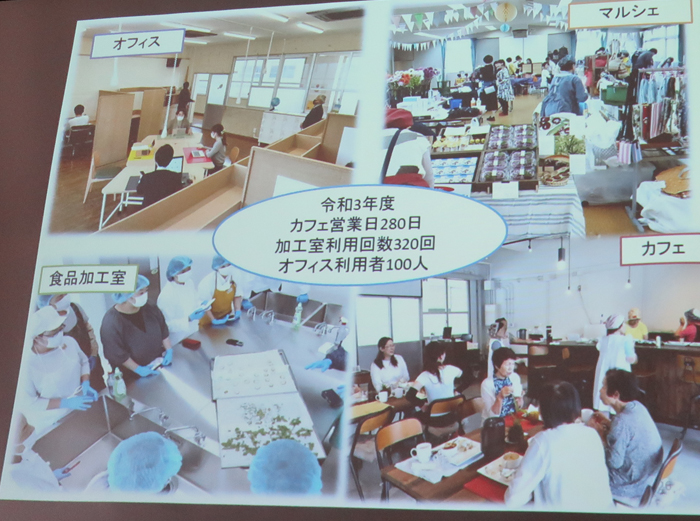 この日ずっと説明、案内してくれた市の職員、環境課の方なのだが、旧小学校の施設、カフェ、無人ショップ、イベント、レンタルスペースの業務も彼がしているとのこと。イベントは常に満員。 |