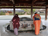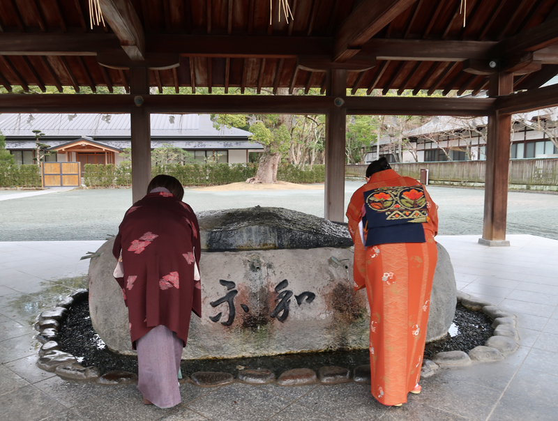 着物でお詣りする女性たち |