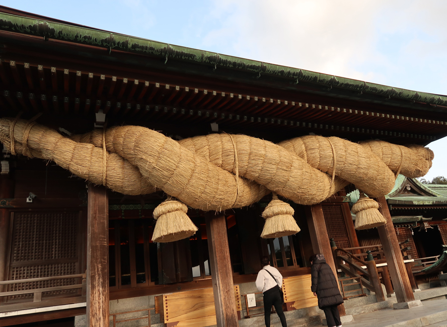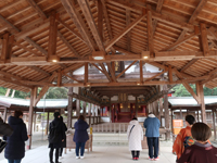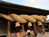 拝殿にかかる日本一の大注連縄 |