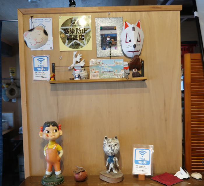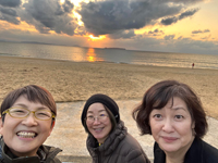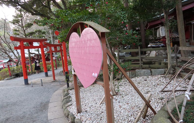 今日は店が休みだったが、キッチンガーデンクラブつながりの由紀子さんが開けてくれた。地元に恩返しがしたいと旅館だった実家を再生して民宿&コミュニティスペースをオープン。居間でコーヒーをご馳走になり、ネコたちと戯れる。そして宮地嶽神社も案内してくださる。王丸屋の前の道に、曲がり矢印で恋の浦と。